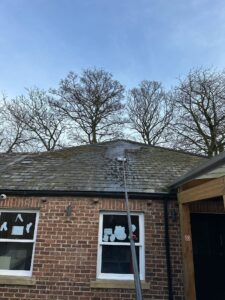 Gutter clearing – removing blockages and retrieving items such as footballs from roof areas and gullies